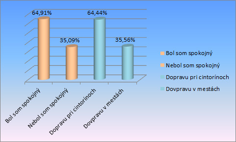 Mesiac pred sviatkom ľudovo nazývaným "Dušičky" sme vám položili štyri otázky, kde ste mohli vyjadriť svoje skúsenosti z rokov minulých. Týkali sa spokojnosti s priebehom dušičiek, dopravy, a krádeží. Ako ste odpovedali na konkrétne otázky znázorňujú aj priložené grafy.