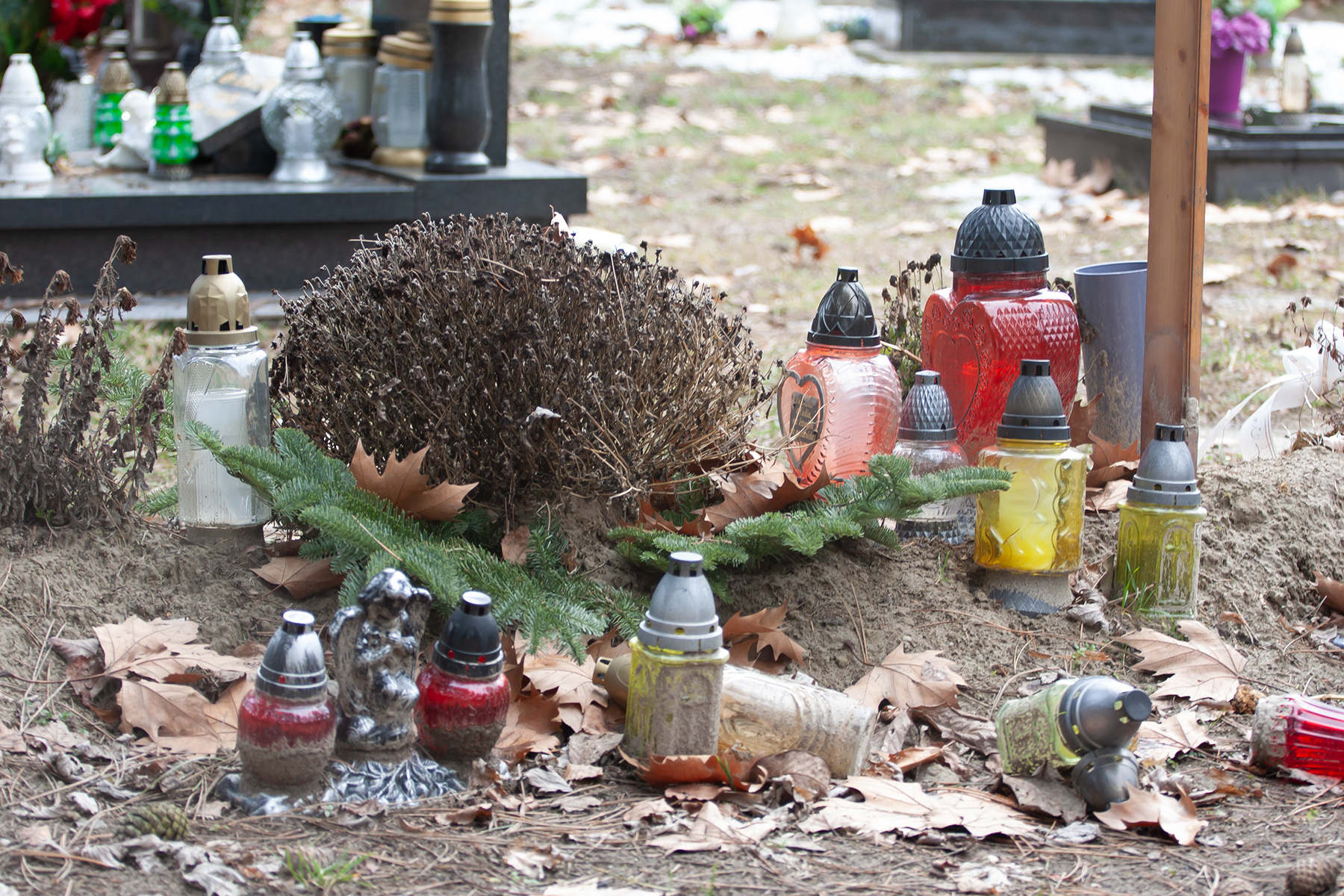 O niekoľko týždňov neskôr však zostáva po tejto spomienke množstvo odpadu. Prírodné materiály sa postupne rozložia, no plastové ozdoby, umelé kvety či parafín z kahancov zostávajú. Ak ich nikto neodstráni, menia sa na neestetický a často aj zapáchajúci problém.